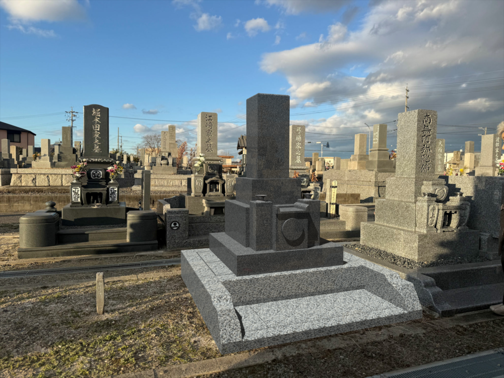知立市内地域墓地にて、天山七山いづかオリジナル和墓 花風型 石塔新築工事の打合せをさせていただきました。