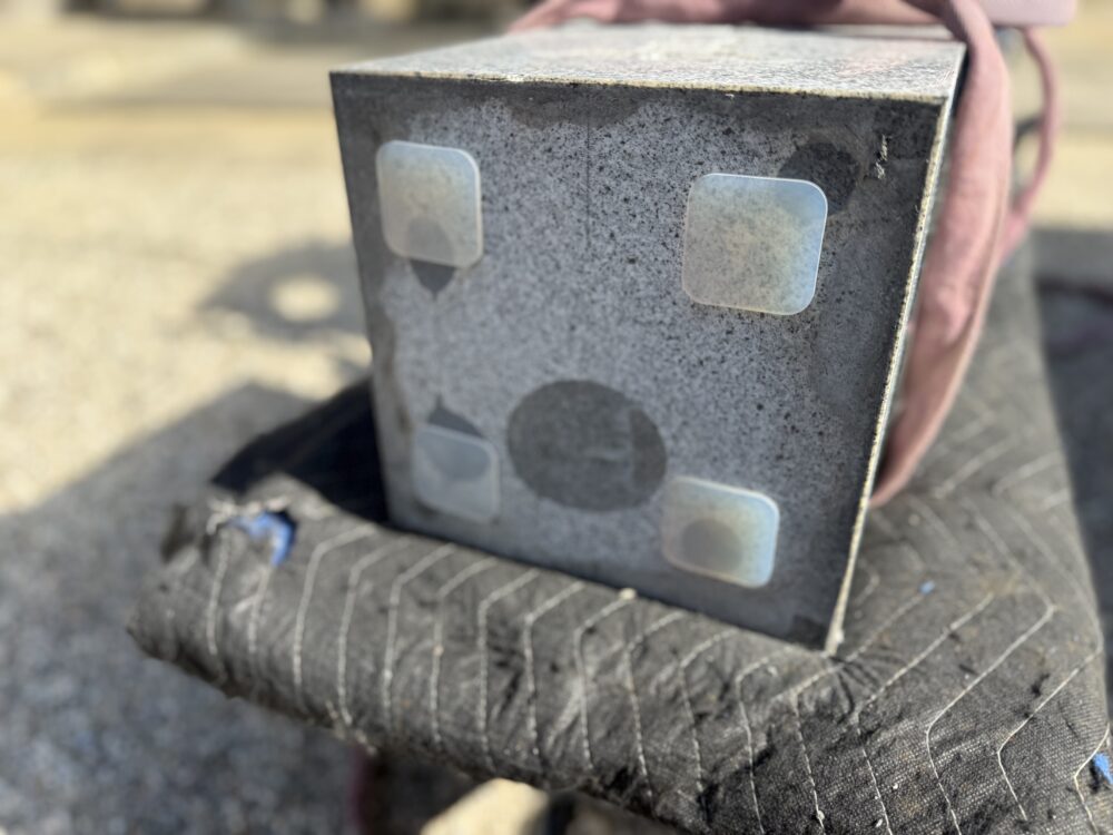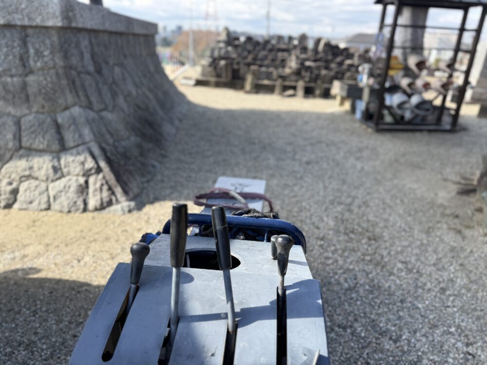 追加彫り工事、竿石の据付けでした。墓石用免震ボンドと免震マット絆で地震対策をいたしました。次回、色入れ直しとなります。引き続き宜しくお願い致します。