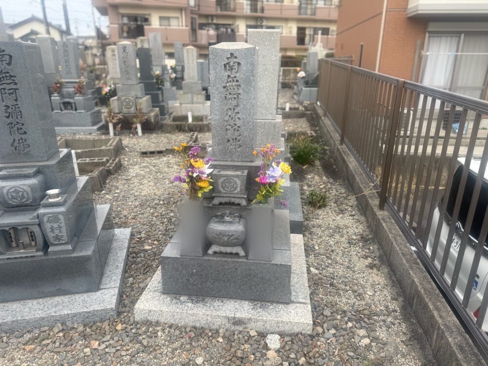 刈谷市内お寺様墓地にて昭和39年建立石塔、石塔追加彫り工事の打合せをさせていただきました。