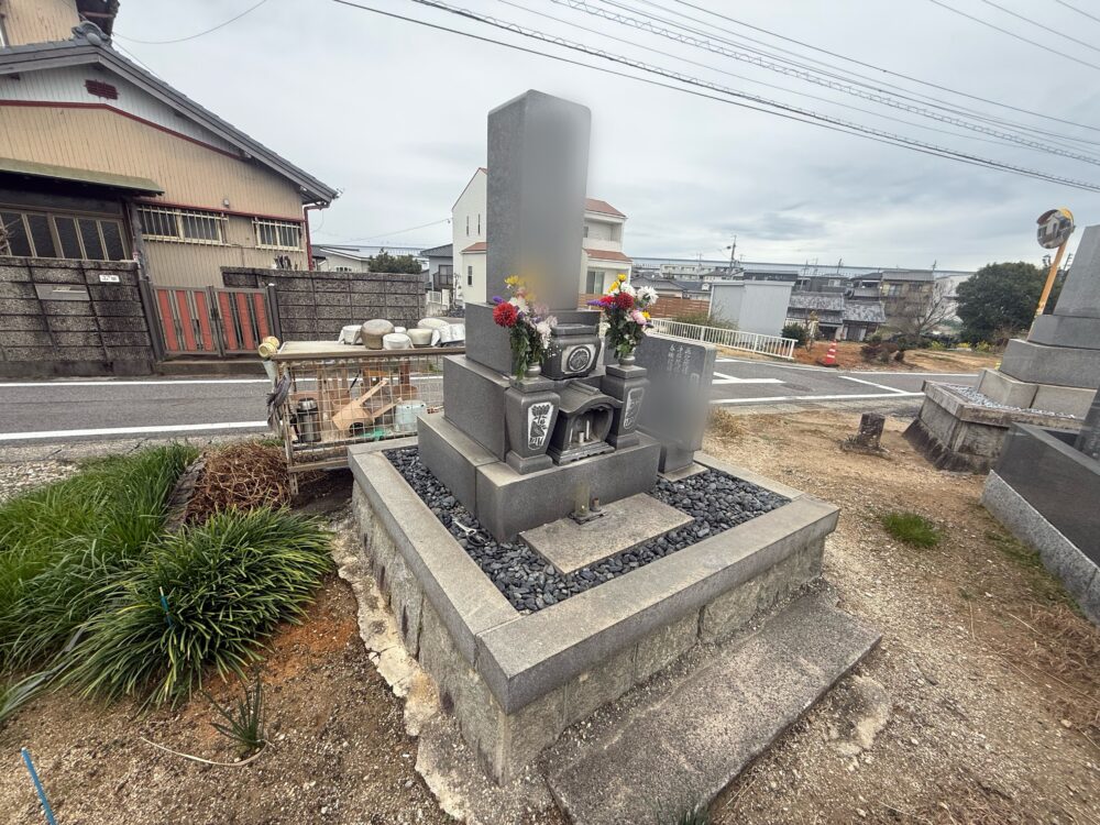豊田市内地域墓地にて、昭和63年建立 石塔追加彫り工事の打合せをさせていただきました。