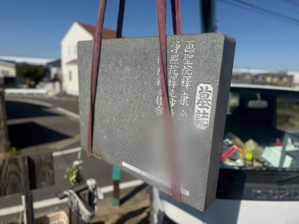 【豊田市 昭和63年建立 石塔追加彫り工事~板石の引取り~】