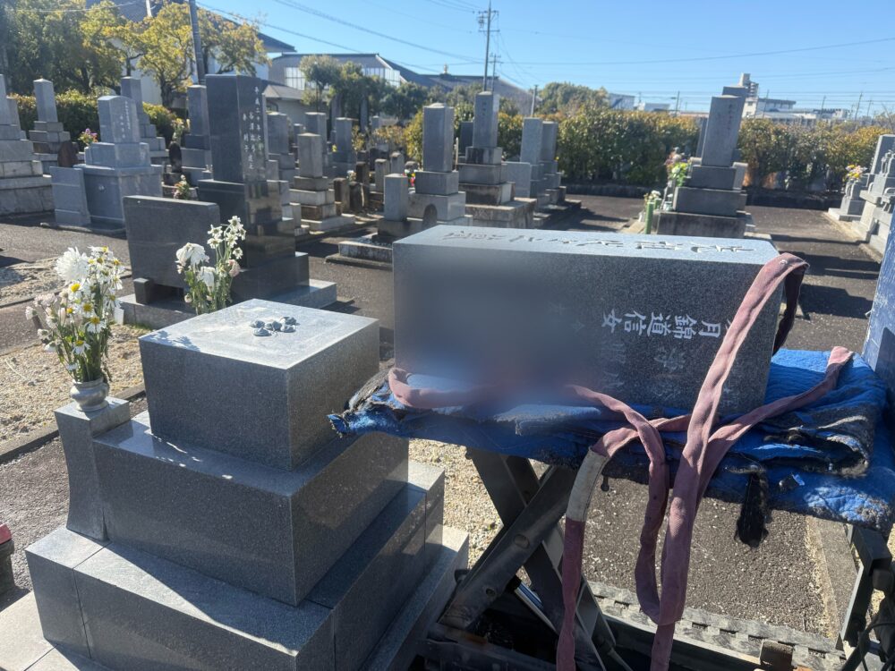 【刈谷市 昭和60年建立 8寸角石塔追加彫り工事~据付け~】