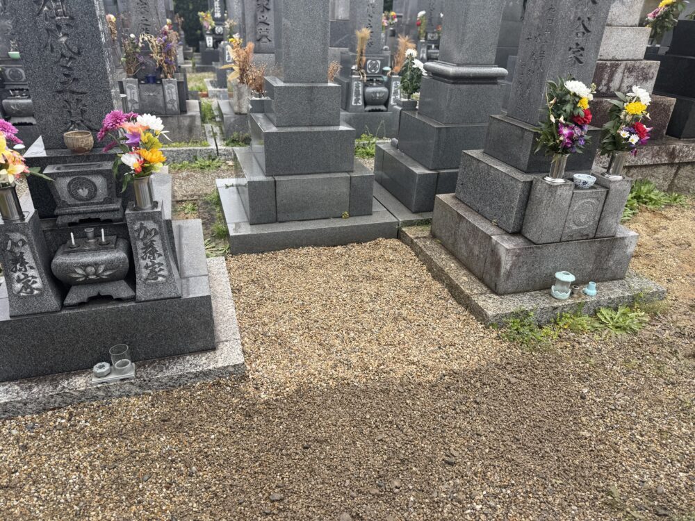 お墓仕舞いの施工でした。整地は周りに合わせて砂利敷きです。ご用命いただきありがとうございました!