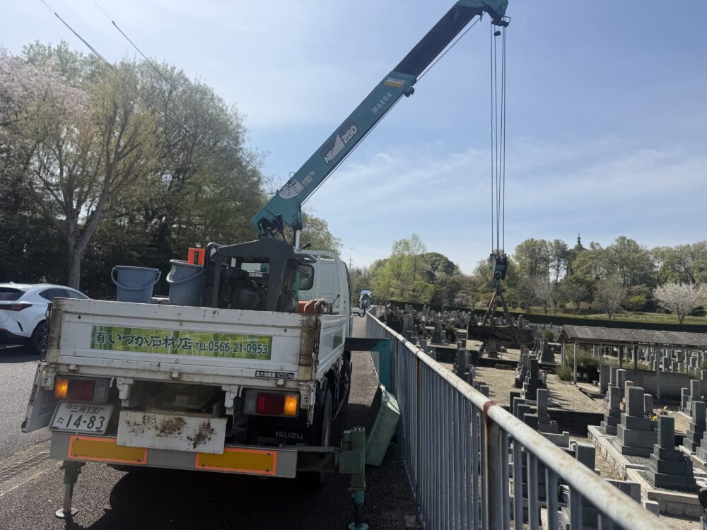 クレーンで作業いたしました。お骨上げ、整地をして完成です。ご用命いただきありがとうございました!