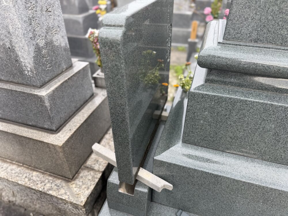 刈谷市内お寺様墓地にて、平成24年建立石塔、墓誌追加彫り工事の板石引取りをさせていただきました。