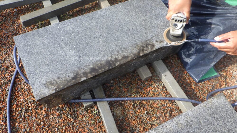前回、施工した舞台の上に四ツ石から順に据付けました。