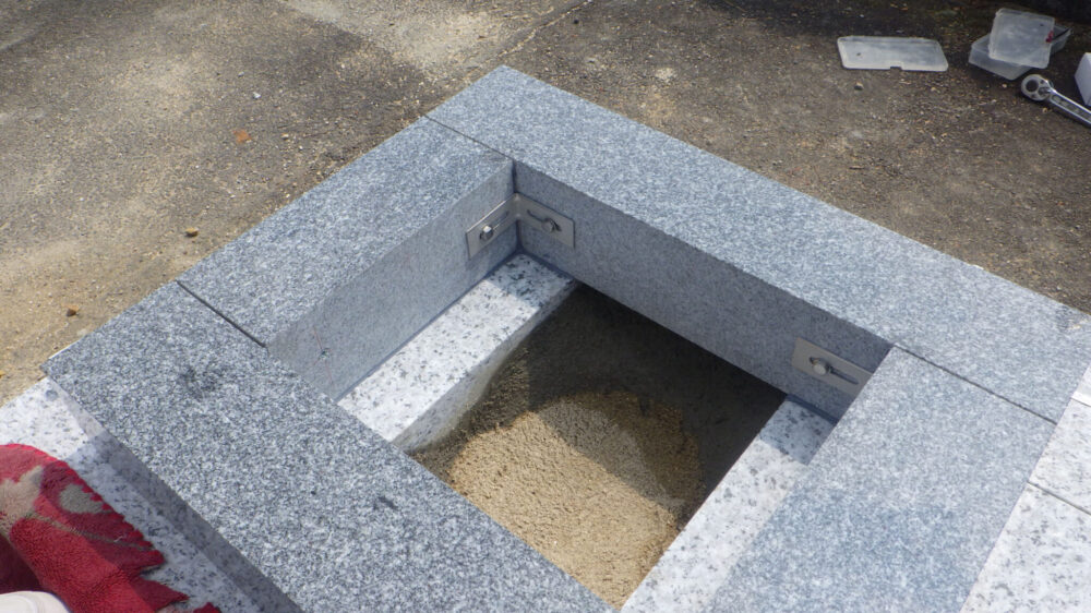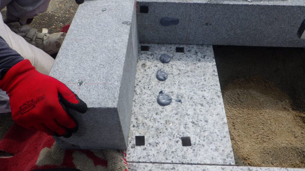 仕上げにお目地にも《墓石用免振ボンド》を込んで、