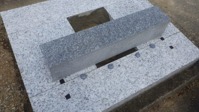 据付けは全て《墓石用免振ボンド》を使用しております。