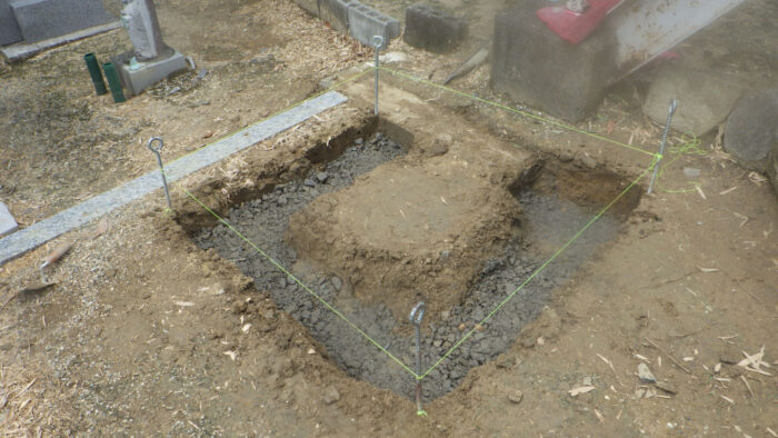 【刈谷市 昭和52年建立8寸角N型石塔 直し工事~基礎工事~】