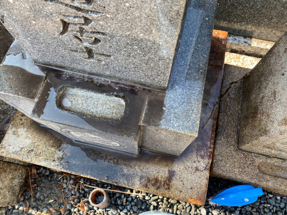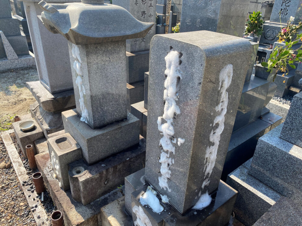 古いお墓でしたので、特殊な洗剤で汚れを除去する