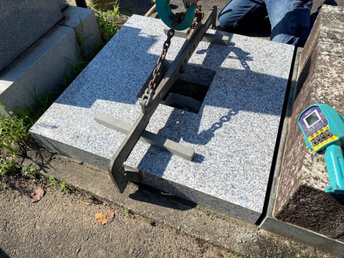 ※カニクレーンが搬入可能な墓地なのでカニクレーンで慎重に