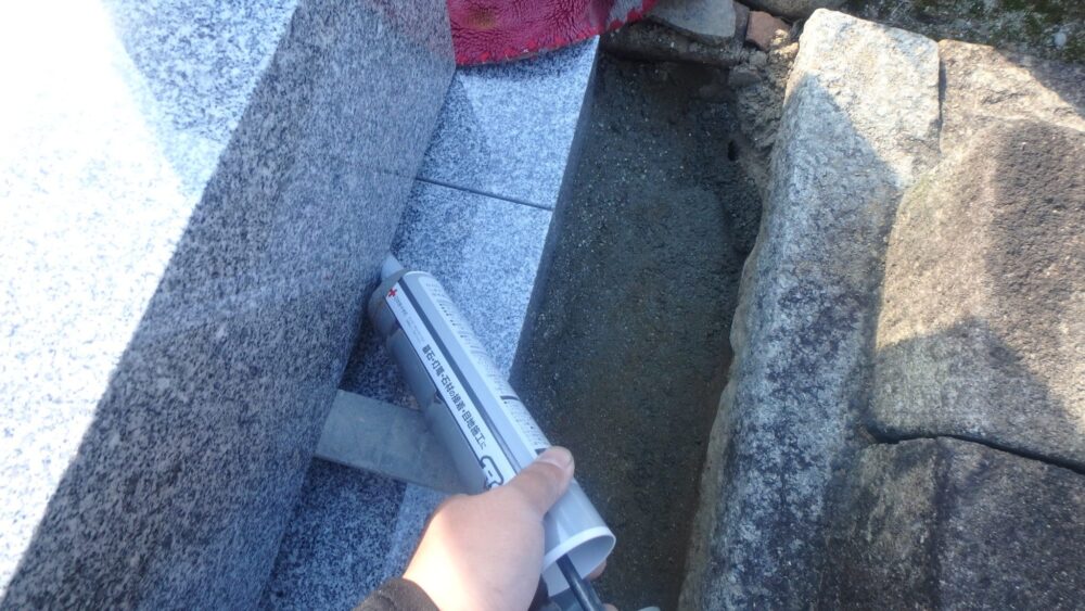 ❒目地にも墓石用免震ボンドを込みます