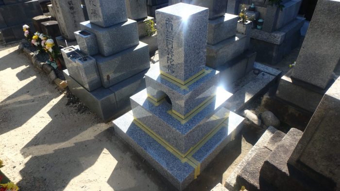 目地にも墓石用免震ボンドを込んで、作業完了です。
