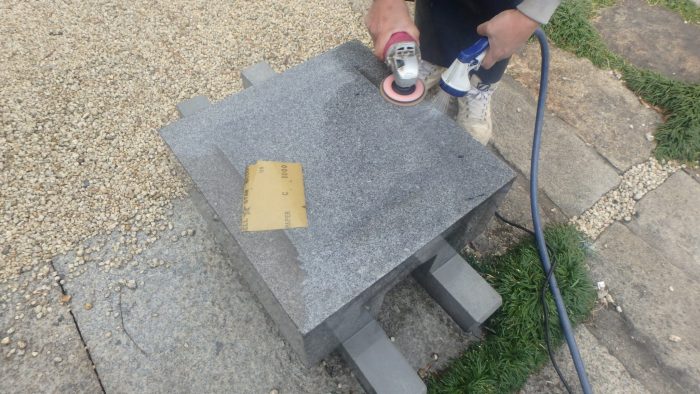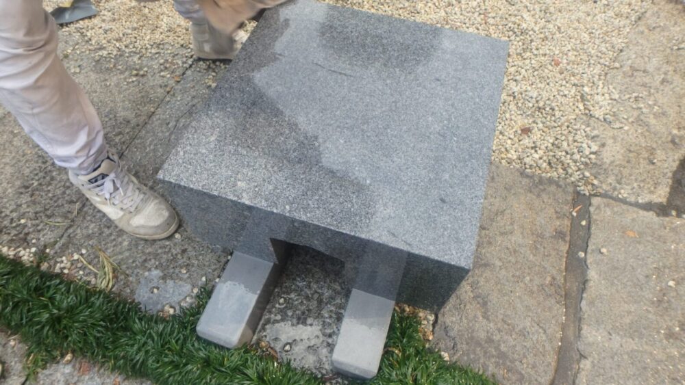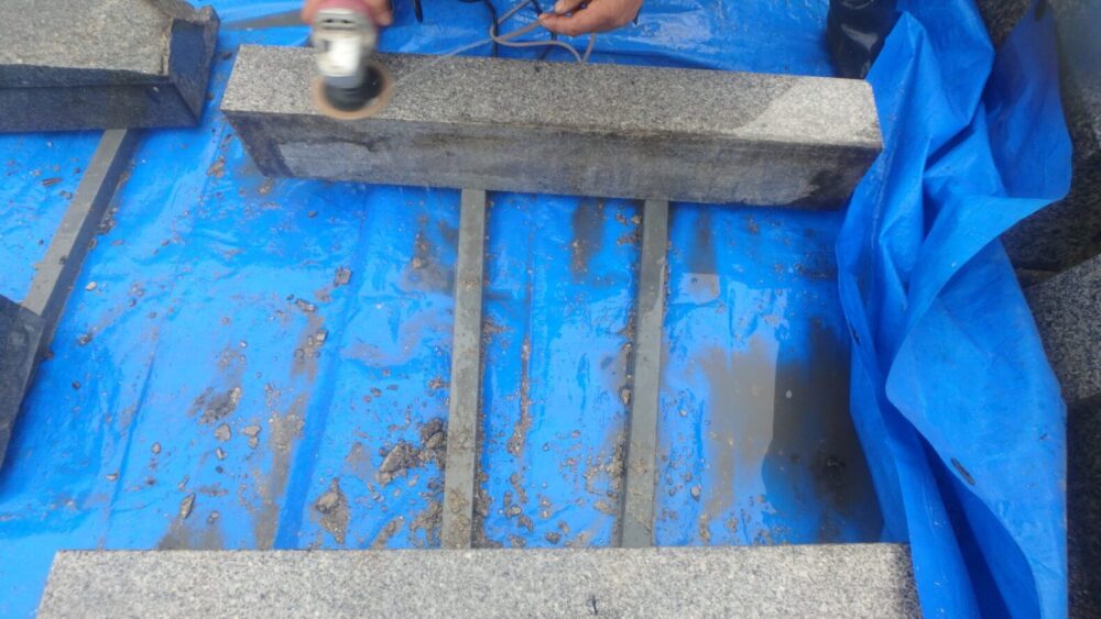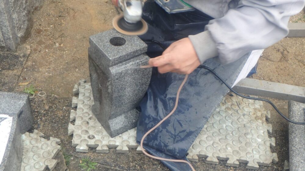 刈谷市霊園にて工事中の8寸角石塔リフォーム工事