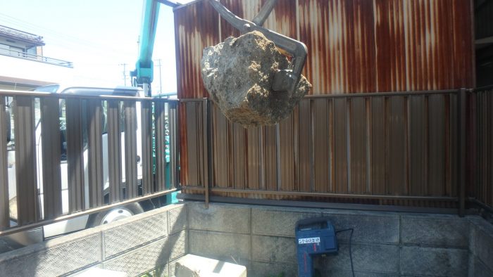 既設の社の台石は地盤沈下により傾いてしまっていますので、