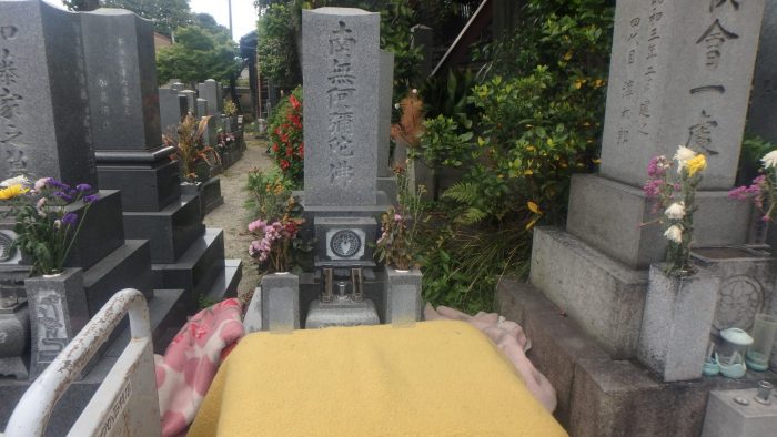 刈谷市お寺墓地にて平成元年建立 8寸角N型石塔 追加彫り工事