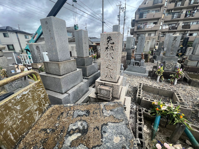 刈谷市内地域墓地にて、昭和50年建立8寸角石塔 お墓仕舞いの施工をさせていただきました。