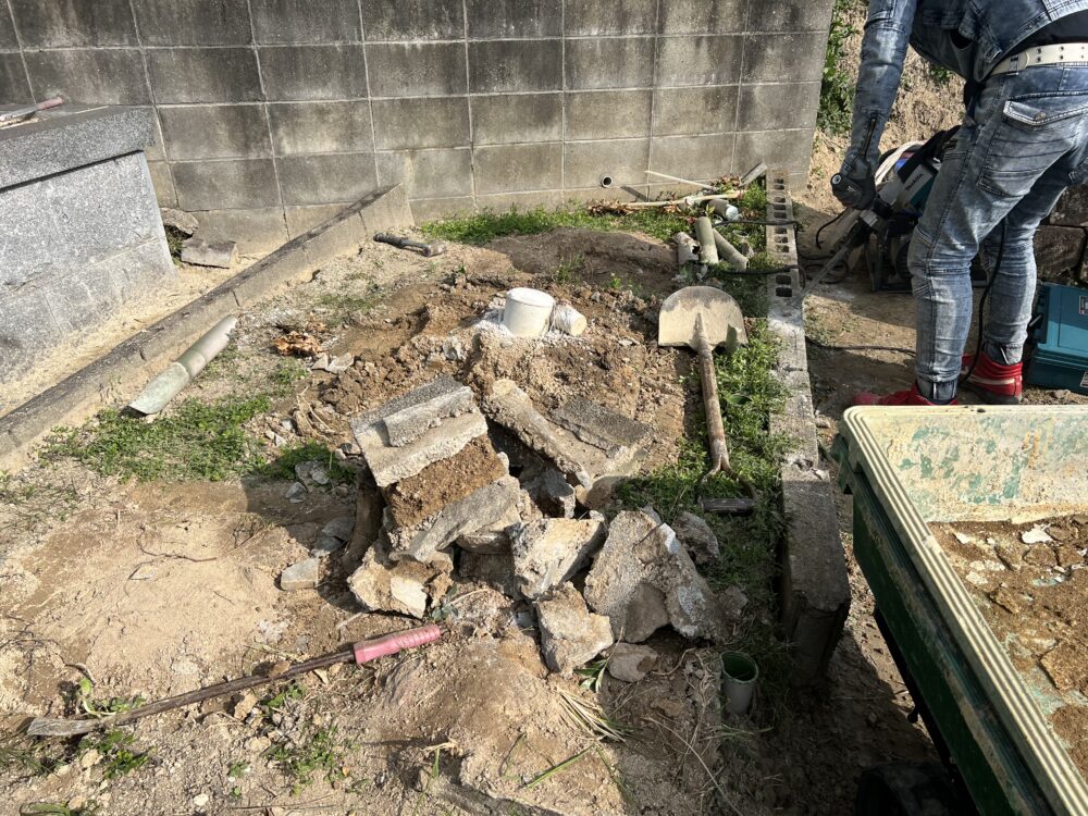 東浦町内、昭和48年建立 9寸角石塔・その他古石碑3基 お墓仕舞いの施工をしました。