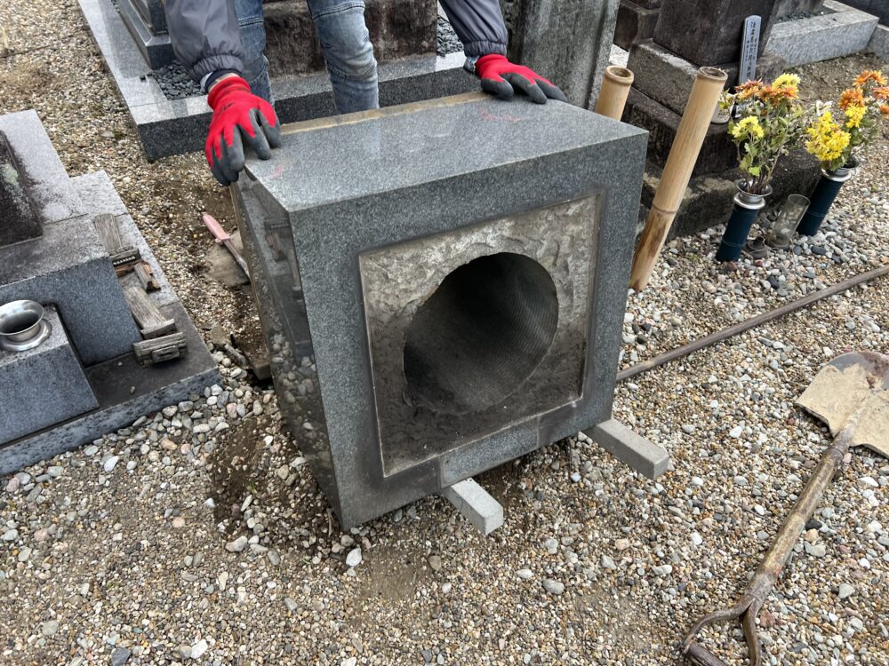 刈谷市内お寺墓地にて、8寸角2段石塔 お墓仕舞いの施工をさせていただきました。