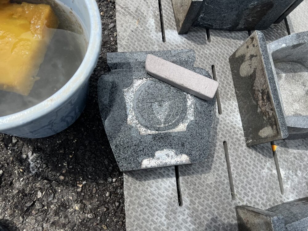 文字の洗浄・水垢の除去・苔の除去をピンポイントにクリーニングしました。次回、板石の引取りとなります。引き続きよろしくお願いいたします。