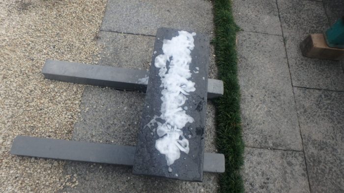 サオ石据付の際、上台と一緒に《免震パッド絆》