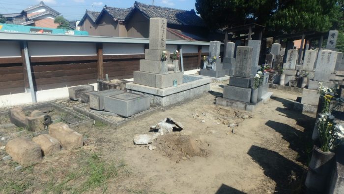基礎工事に際して、既設のお墓2基も据直しますので、