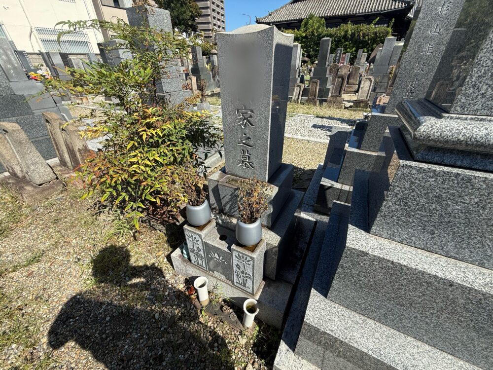 刈谷市内お寺様墓地にて昭和11年建立、7寸角石塔お墓仕舞いの打合せをさせていただきました。
