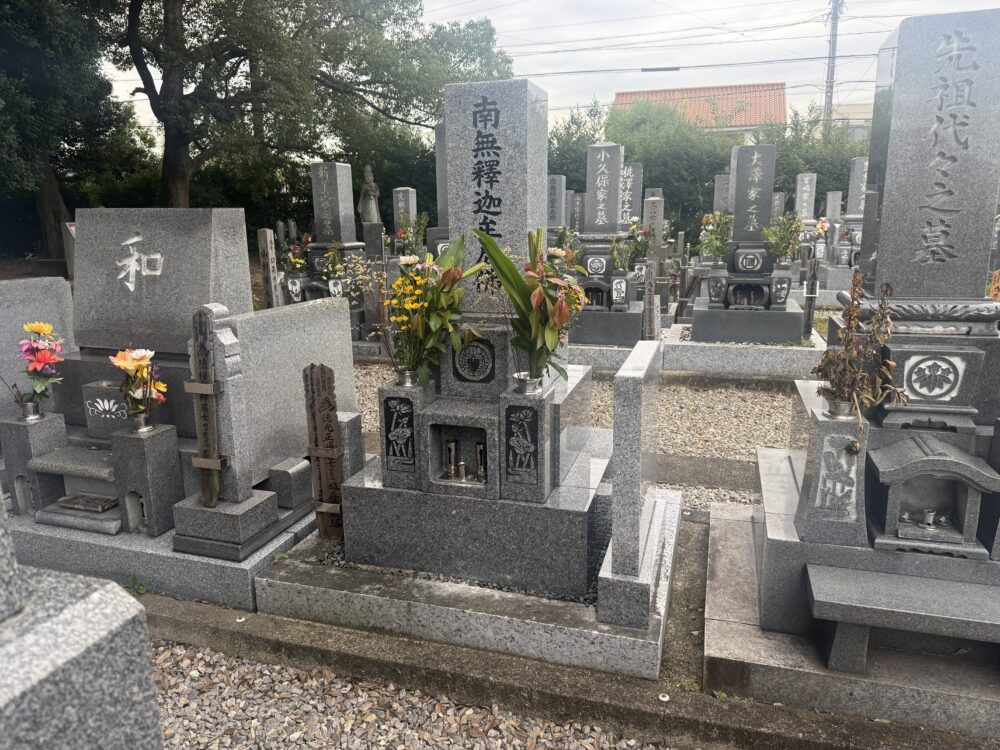 東浦町内お寺様墓地にて、令和元年建立8寸角石塔追加彫り工事の打合せをさせていただきました。