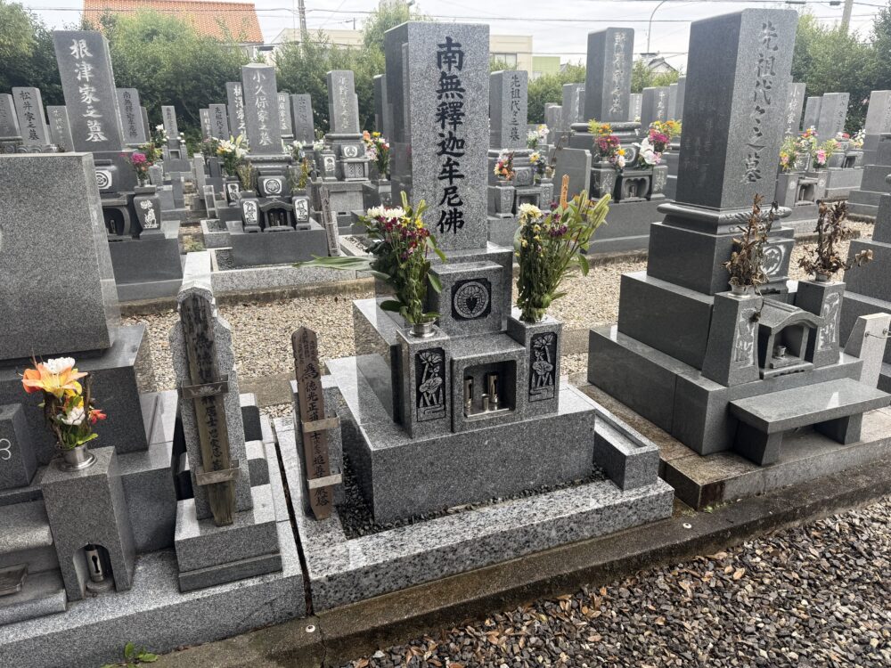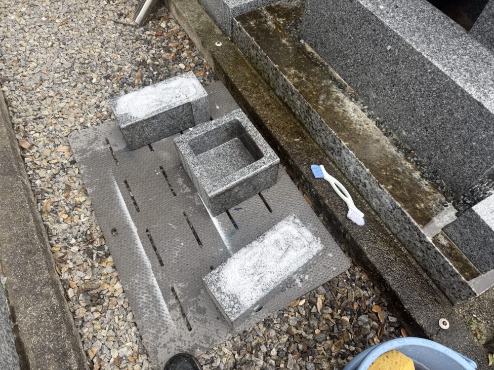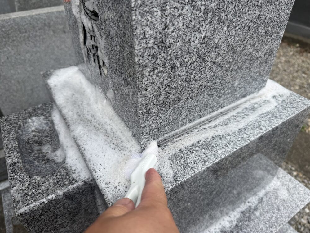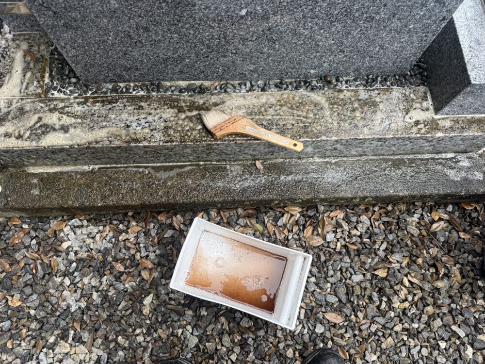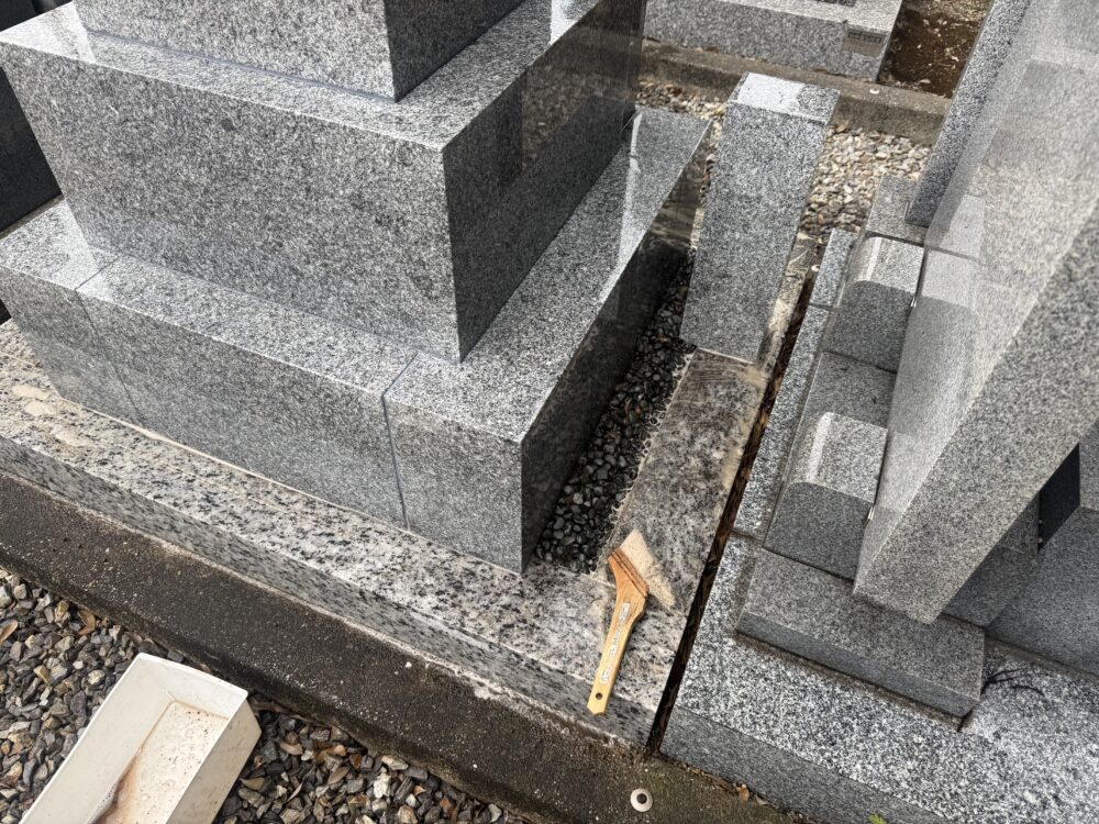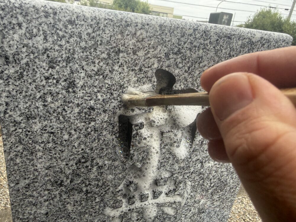 東浦町内お寺様墓地にて、令和元年建立8寸角石塔追加彫り工事のベーシッククリーニングをさせていただきました。