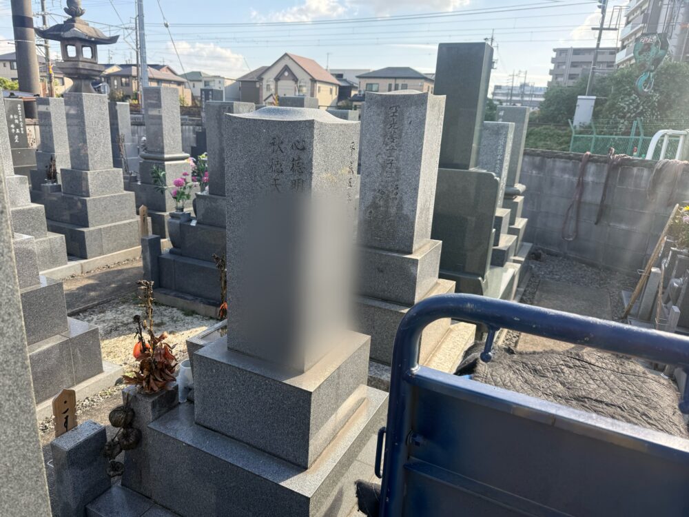 刈谷市内お寺様墓地にて平成5年建立石塔追加彫り工事 竿石の引取りをさせていただきました。