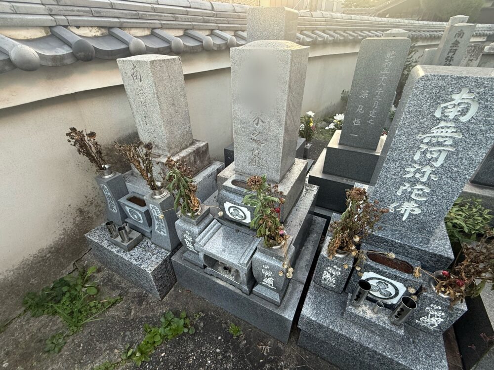 半田市内お寺様墓地にて、大正8年建立石塔 追加彫り工事の打合せをさせていただきました。