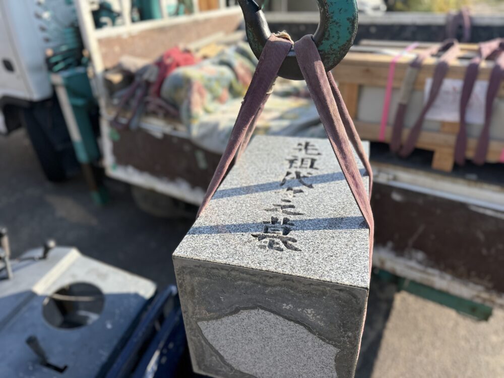 【東浦町 平成19年建立 石塔追加彫り工事~竿石の引取り~】