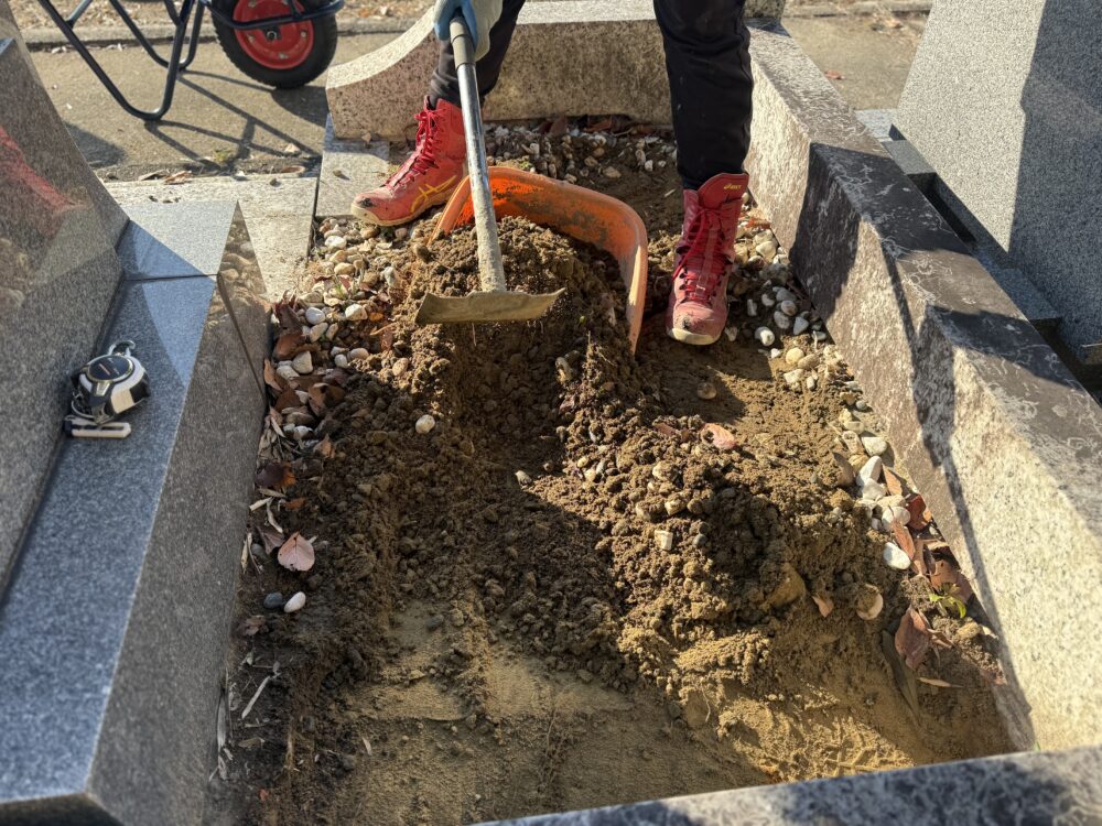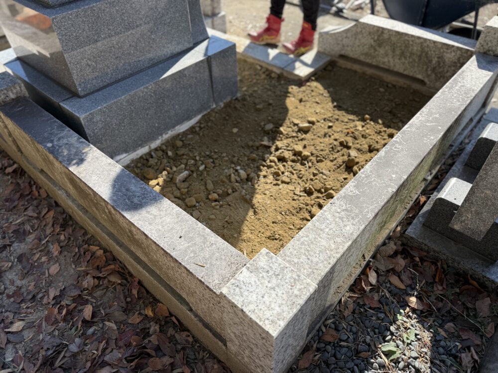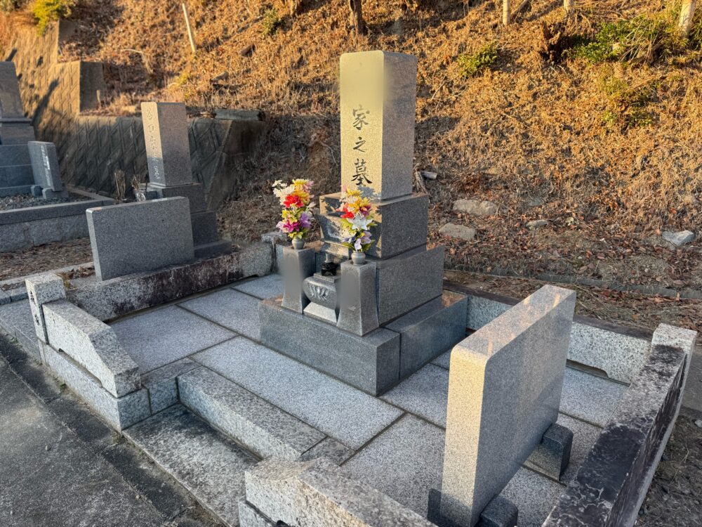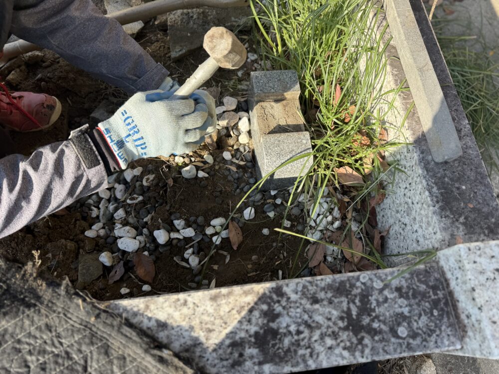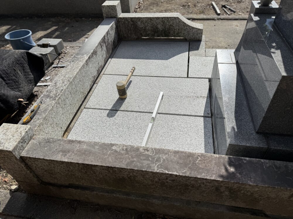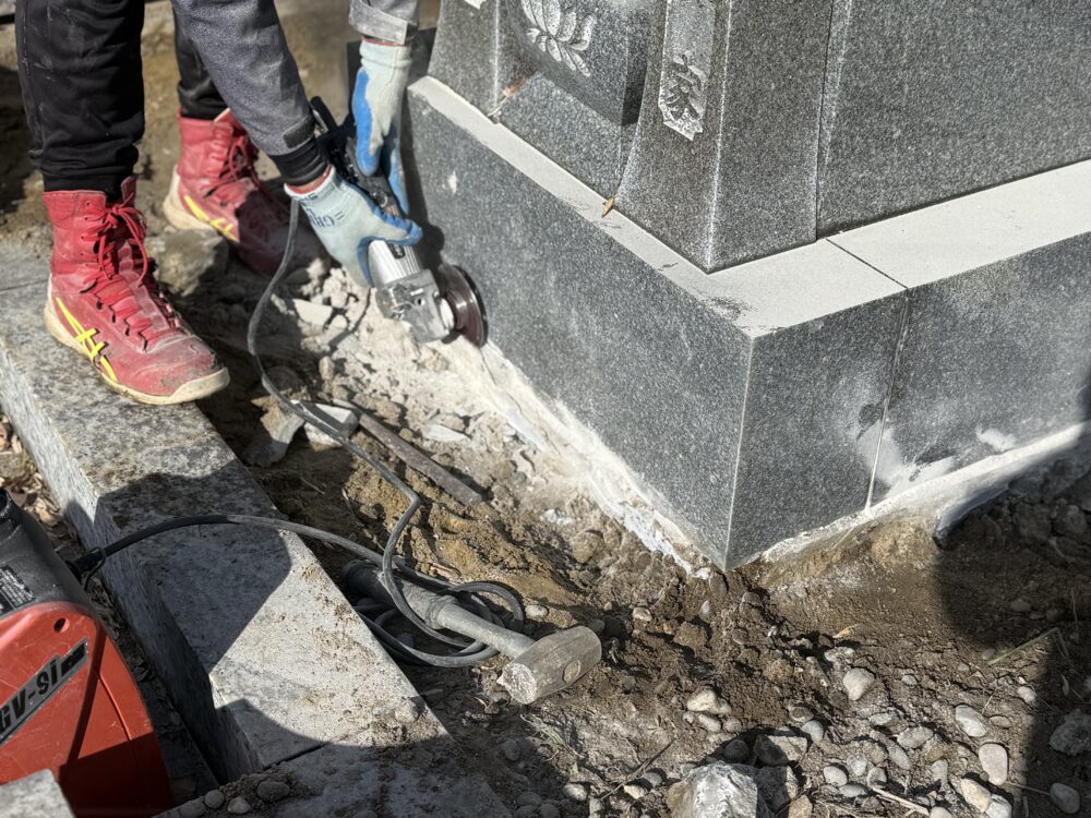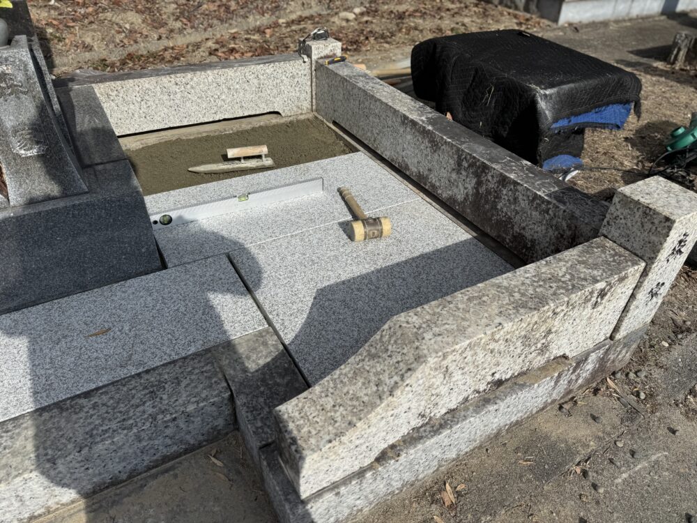 美浜町お寺様墓地にて、昭和59年建立石塔、貼石工事の施工をさせていただきました。