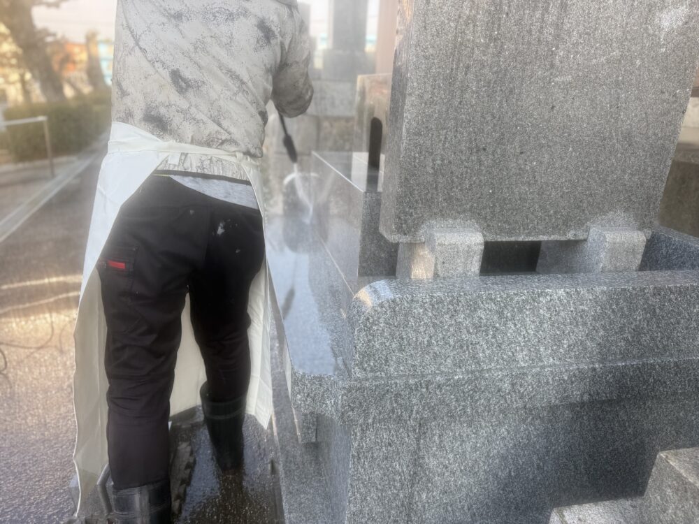 刈谷市内お寺様墓地にて、昭和58年建立石塔 クリーニング工事の施工をさせていただきました。