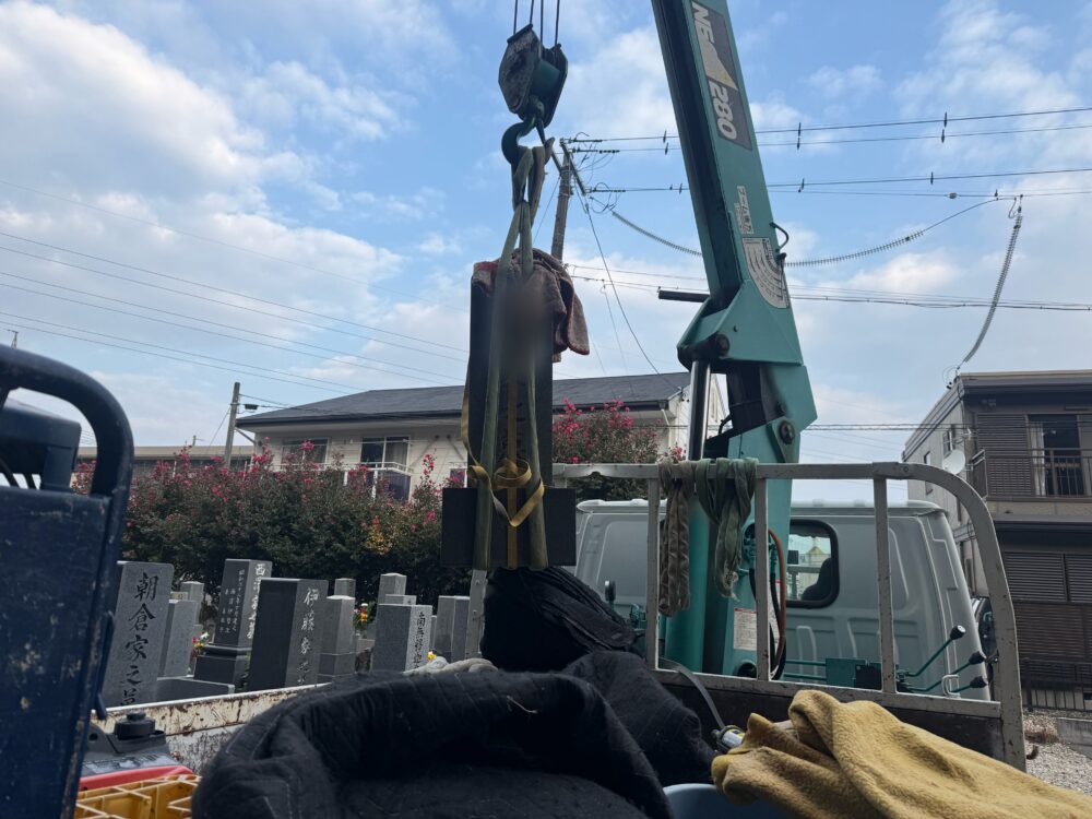 刈谷市内お寺様墓地にて平成9年建立8寸角石塔追加彫り工事の竿石の据付け、色入れ直しをさせていただきました。