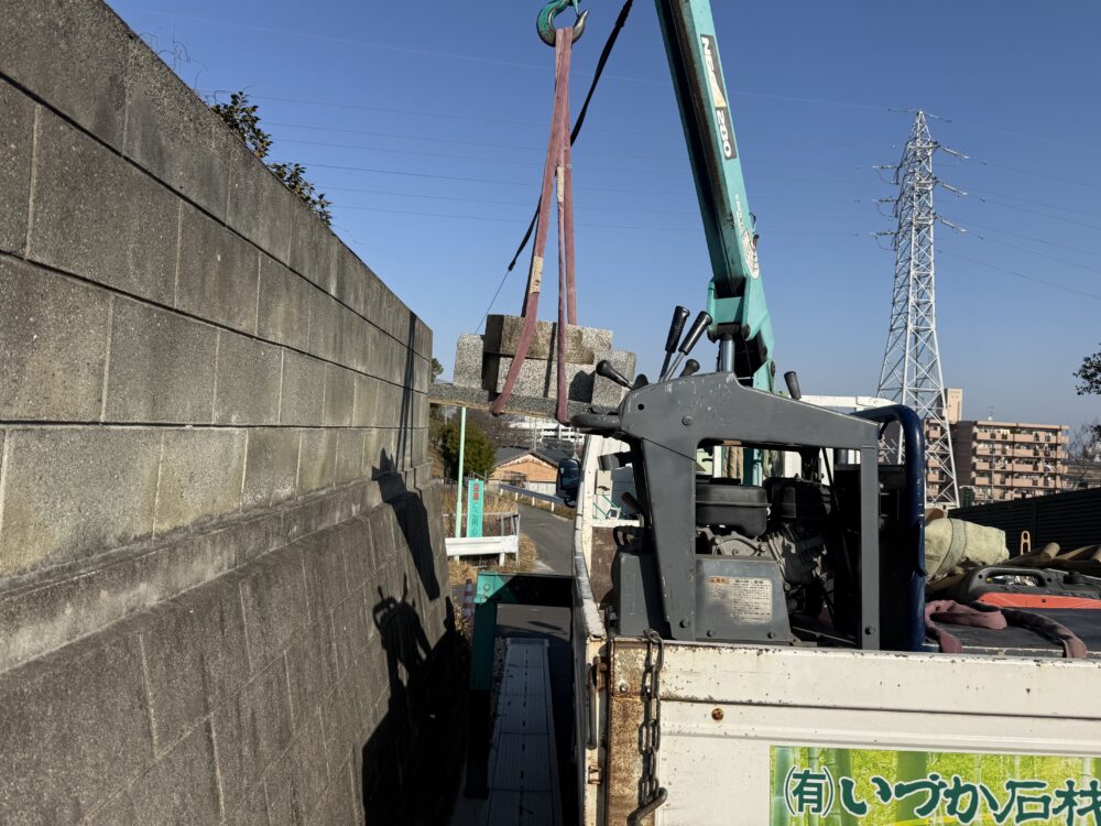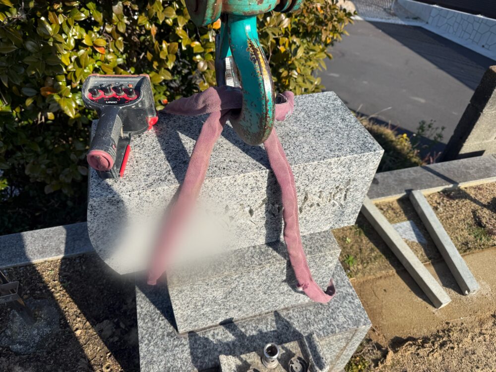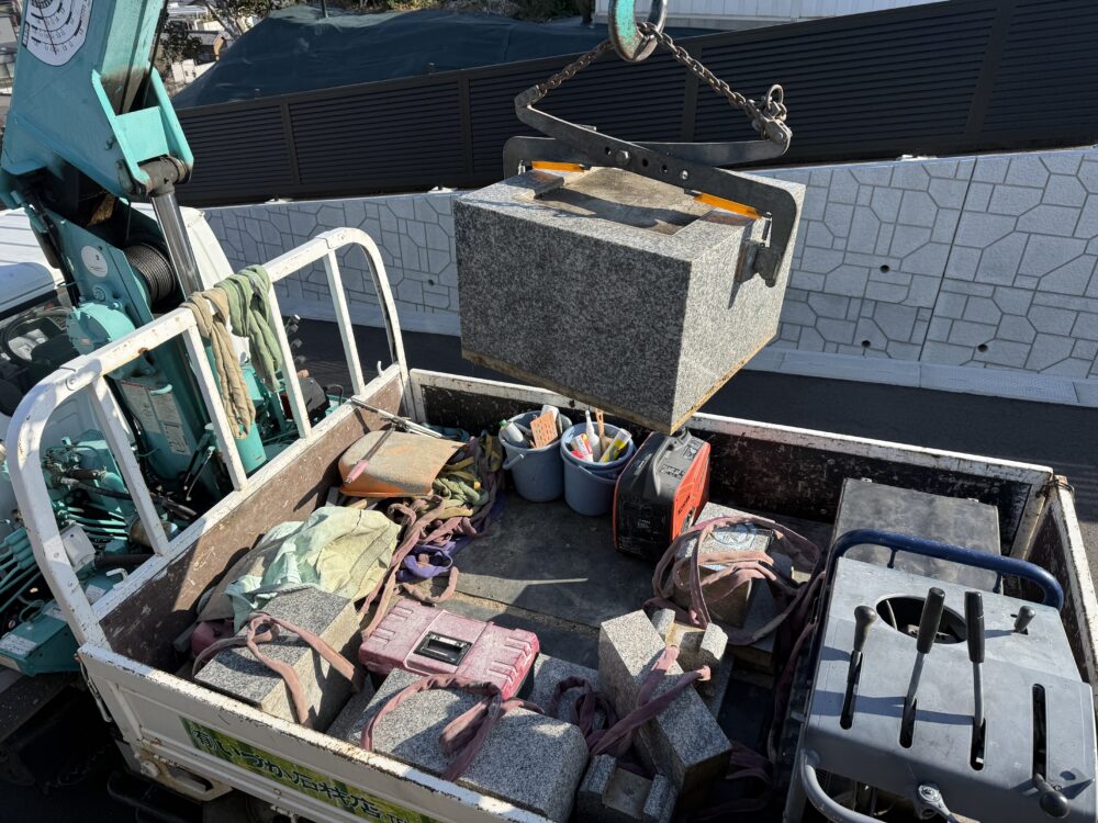 お墓仕舞いの施工完了です。クレーンでの作業で丁寧安全に進みました。ご用命いただきありがとうございました。