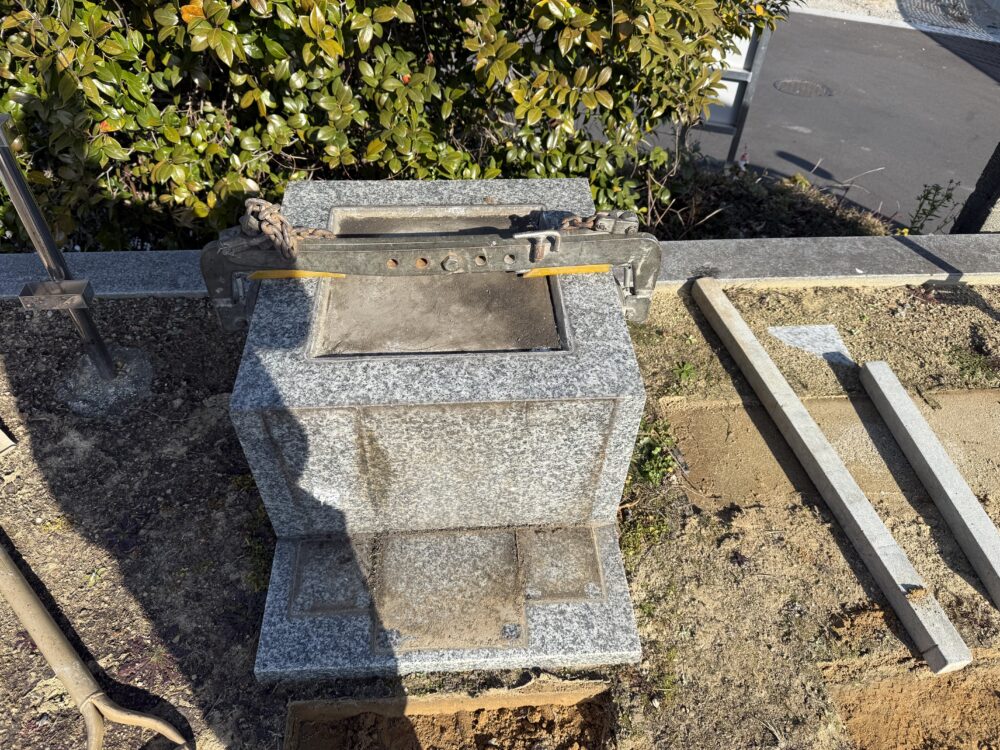 東浦町内お寺様墓地にて、墓相型石塔のお墓仕舞いをさせていただきました。